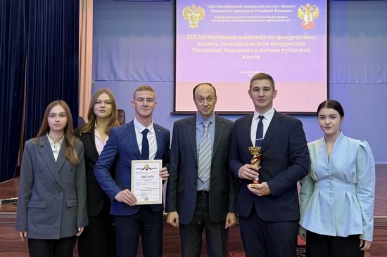 В творческо-интеллектуальном состязании приняли участие 7 команд из 6 учебных заведений высшего образования: Санкт-Петербургского и Крымского юридических институтов (филиалов) Университета прокуратуры Российской федерации, Северо-Западного института (филиала) Московского государственного юридического университета имени О.Е. Кутафина, Северо-западного филиала Российского государственного университета правосудия имени В.М. Лебедева, Всероссийский государственный университет юстиции, Санкт-Петербургский университет Государственной противопожарной службы МЧС России имени Е.Н. Зиничева. Честь нашего Института отстаивали студены 5 курса Качура Дмитрий, Дрынь Никита, Высочина Алиса, Коломейцева Яна и Надырова Рамина. Открыл олимпиаду заместитель директора Санкт-Петербургского юридического института Шобухин В.Ю. Он пожелал всем участникам удачи и успехов, отметив, что именно такие мероприятия позволяют студентам проявить себя на творческой стезе, а также проверить свои знания по профильным дисциплинам, применив их на практике. Олимпиада, посвященная в этом году теме «Прокуратура в системе публичной власти», состояла из пяти этапов: конкурса-приветствия, в котором участникам было необходимо представить членов команды, конкурса «Творческий подход», в котором студенты выступали со стихотворением или песней о прокуратуре, викторины по прокурорскому надзору, домашнего задания, представляющего собой видеофильм по тематике олимпиады, а также конкурса капитанов. По итогам олимпиады команда Института заняла первое место, продемонстрировав огромную волю и большое стремление к победе.