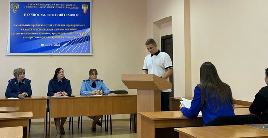 В работе семинара приняли участие старший прокурор отдела по надзору за процессуальной деятельностью органов следствия МВД по Республике Крым управления по надзору за уголовно-процессуальной и оперативно-разыскной деятельностью прокуратуры Республики Крым Юлия Николаевна Ященко, а также преподаватели кафедр и студенты 3, 4 и 5 курсов.