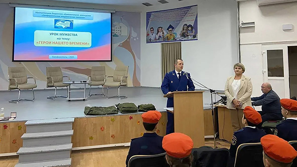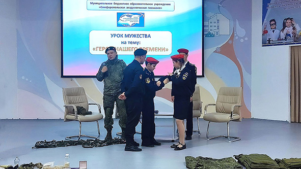 В ходе образовательного мероприятия выступила директор Симферопольской академической гимназии Аликаева Е.А., которая обратила внимание обучающихся на важности поддержки военнослужащих, героически выполняющих воинский долг. Военнослужащие с позывными «Музыка» и «Волк» 810-ой отдельной гвардейской орденов Жукова и Ушакова бригады морской пехоты Военно-морского флота Российской Федерации, являющиеся участниками специальной военной операции, провели для детей мастер-класс, в ходе которого рассказали о применении различных элементов воинского снаряжения. Благодаря интерактивной форме мастер-класса дети стали его непосредственными участниками и обучились практическим особенностям оказания экстренной медицинской помощи и эвакуации раненых, а также получили ответы на многочисленные вопросы.