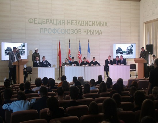 Молодежный форум собрал около 200 человек – директоров и учащихся общеобразовательных школ г. Симферополя, а также учителей истории. Перед началом Форума для участников были проведены экскурсии: доцентом кафедры общегуманитарных и социально-экономических дисциплин Института И.П. Задерейчуком по выставке «Ни давности, ни забвения», посвященной Международному военному трибуналу в г. Нюрнберге, и председателем студенческого Патриотического клуба Я. Ериным по выставке «Нацизм – невыученные уроки» – об истории зарождения и развития национализма на территории современной Украины.