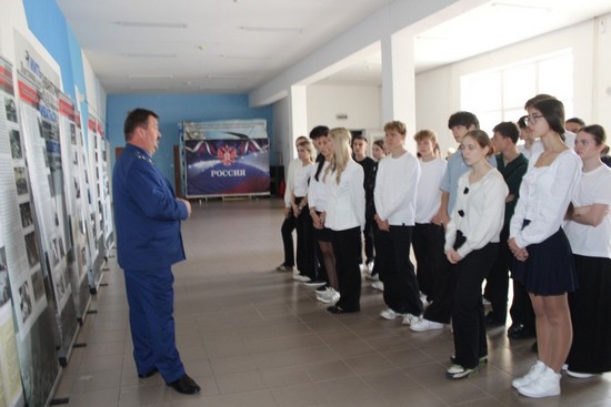 Перед началом мероприятия для учащихся образовательного учреждения доцентом кафедры общегуманитарных и социально-экономических дисциплин И.П. Задерейчуком была проведена экскурсия по двум важным экспозициям: выставке «Ни давности, ни забвения», посвящённой Международному военному трибуналу в Нюрнберге, и выставке «Нацизм – невыученные уроки», рассказывающей о появлении и распространении националистических идей на Украине. Экскурсия позволила молодым людям лучше понять истоки современных конфликтов и подчеркнуть важность недопущения трагедий прошлого. Мероприятие открыла декан юридического факультета Института О.И. Белова. Ольга Ивановна отметила важность памяти о событиях Нюрнбергского процесса во избежание повторения подобного ужаса в будущем. Рассказывая детям правду о Нюрнберге, мы закладываем прочный фундамент для воспитания молодых поколений, готовых противостоять любым проявлениям агрессии и беззакония, ведь знание своей истории формирует ответственное отношение к современности и укрепляет понимание ценностей мира, свободы и справедливости.