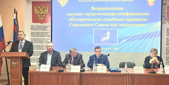 Целью мероприятия стала активизация и стимулирование научной и творческой деятельности, содействие обмену научным и практическим опытом, выработка единой позиции в оценке преступлений нацистов, недопущение фальсификации итогов Великой Отечественной и Второй мировой войн, а также формирование эффективных методик, направленных на противодействие фальсификации истории и реабилитации нацизма. Перед началом конференции гостям и участникам был продемонстрирован документальный фильм о Нюрнбергском процессе. Открыл мероприятие директор Крымского юридического института (филиала) Университета прокуратуры Российской Федерации Зацепин А.М. Он отметил, что сегодняшняя конференция проходит в особый, знаковый год – год 80-летия Великой Победы. И символично, что буквально вчера, 20 ноября 2025 года, исполнилось 80 лет с момента начала Нюрнбергского процесса – судебного разбирательства, вошедшего в историю как «Суд народов». Главной целью конференции является освещение и анализ судебных процессов, проведенных после Второй мировой войны, ставших важной вехой в истории права и справедливости, подчеркнул Александр Михайлович.