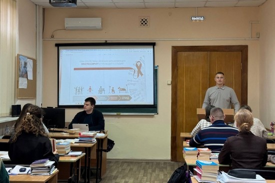 ВИЧ-инфекция – хроническое заболевание, вызванное вирусом иммунодефицита человека. Вирус поражает клетки иммунной системы, отвечающие за борьбу с инфекциями, и разрушает их, в результате чего иммунитет ослабевает. Организм становится уязвимым для бактерий, вирусов и грибков, с которыми раньше мог легко справляться. СПИД – это конечная, пятая, стадия ВИЧ-инфекции, когда в организме возникают необратимые процессы, которые приводят к быстрой гибели больного. По оценкам Всемирной организации здравоохранения, на конец 2024 года в мире с ВИЧ жили 40,8 млн. человек. Из них – 1,4 млн. дети до 14 лет. Согласно данным на 2024 год, в мире 630 тысяч человек умерли от причин, связанных с ВИЧ. В Российской Федерации по официальным данным живет около 1,25 млн человек с ВИЧ, что составляет более 1% населения, или каждого сотого гражданина. Из них около 90% знают свой статус. Студентам представили информацию о путях распространения заболевания, доступных методах профилактики, а также ключевых мерах предупреждения заражения ВИЧ.
