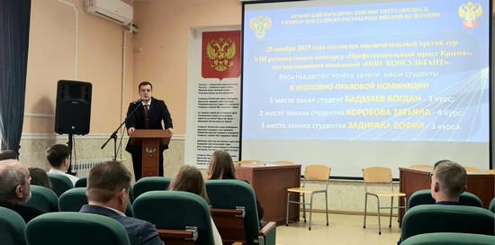 Иинтеллектуальная игра состояла из четырех этапов, каждый из которых включал пять заданий разного типа. В первом раунде «Расшифруй картинку» участники должны расшифровать картинки, на которых изображены известные принципы права или конституционные права человека. Во втором раунде «Историческая справка» команды ответили на вопросы, касающиеся истории юриспруденции и известных юристов прошлого. Третий раунд «Найди общее» предполагал выявление общих признаков трех из четырех представленных картинок и определение лишнего элемента. Четвертый раунд «Смотрим все!» заключался в просмотре фрагмента из известного кинофильма и определении названия фильма, а также ответов на дополнительные вопросы. Задания игры были сложные, но все участники успешно справились, проявили глубокие знания в области права, внимательность, смекалку и умение быстро анализировать информацию. Атмосфера соревнования была напряжённой, но дружелюбной, каждая команда продемонстрировала высокий уровень подготовки и профессиональный подход. В результате увлекательной и насыщенной интеллектуальной битвы победителем стала команда преподавателей «Титаны». Они блестяще подтвердили свой профессионализм, доказали превосходный уровень владения правовой наукой и стали достойным примером для студентов, показывая, каким высоким стандартам необходимо соответствовать будущим специалистам в области права. Студенты получили отличную мотивацию и наглядное подтверждение того, какими глубокими познаниями и уверенными действиями должны обладать настоящие профессионалы своего дела.