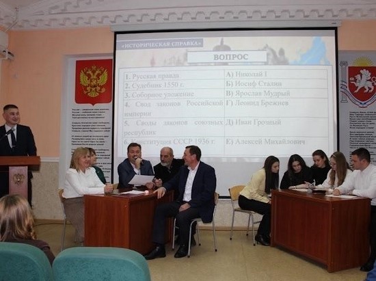 Также Александр Михайлович отметил студентов, отличившихся недавними победами в региональных, межвузовских и всероссийских олимпиадах и конкурсах. Пожелал студентам дальнейших побед, развития профессиональных качеств и успешной карьеры в юридической сфере. В ходе мероприятия была проведена Интеллектуальная игра, в которой приняли участие две команды, состоящие из представителей разных курсов Института и профессорско-преподавательского состава. В состав команды студентов «Зумеры» вошли: студентка 2 курса – Суркова Вероника, студентка 3 курса – Маянцева Ксения, студентка 41-С группы – Рабаданова Диана, студентка 42-С группы – Макарова София и капитан команды студент 5 курса – Буренко Константин. Команду преподавателей «Титаны» представляли доцент кафедры уголовно-правовых дисциплин Лапко Г.К., заведующий кафедрой гражданско-правовых дисциплин Заулочная С.А., доцент кафедры уголовного процесса, криминалистики и участия прокурора в уголовном судопроизводстве Комарова Е.А., доцент кафедры общегуманитарных и социально-экономических дисциплин Задерейчук И.П. и капитан команды заведующий кафедрой государственно-правовых дисциплин Басов А.В.