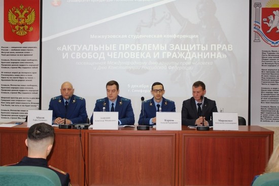 Целью конференции стало обсуждение актуальных правовых проблем в различных сферах. Участники дискутировали на темы деятельности органов прокуратуры в эпоху активной цифровизации, дееспособности несовершеннолетних, международно-правовых аспектов реализации права народов на самоопределение. Также были затронуты возможности изменения действующего законодательства Российской Федерации и предложения по конкретным направлениям. Особо стоит отметить обсуждение таких важных вопросов, как: права и свободы человека и гражданина в условиях проведения СВО, роль прокурорского надзора в защите прав и свобод участников специальной военной операции и членов их семей, свобод человека и гражданина в новых регионах. С приветственным словом к участникам конференции обратился директор Крымского юридического института (филиала) Университета прокуратуры Российской Федерации Зацепин Александр Михайлович. Также участников конференции поприветствовал старший прокурор отдела по надзору за соблюдением прав и свобод граждан Управления по надзору за исполнением федерального законодательства прокуратуры Республики Крым Карпов Алексей Германович.