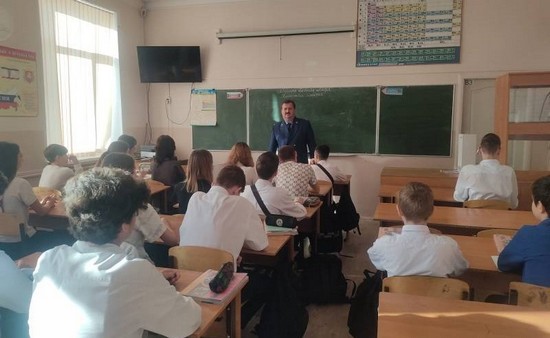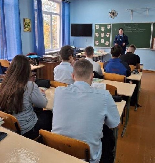 Доцент кафедры канд. пед. наук, доцент Лукавенко А.В. совместно со студентами 5 курса специалитета Калюжной А. и Даниелян С. ознакомил учащихся с общей характеристикой уголовной ответственности несовершеннолетних, акцентировав внимание на возрасте наступления данного вида ответственности, видах и особенностях назначения наказания.