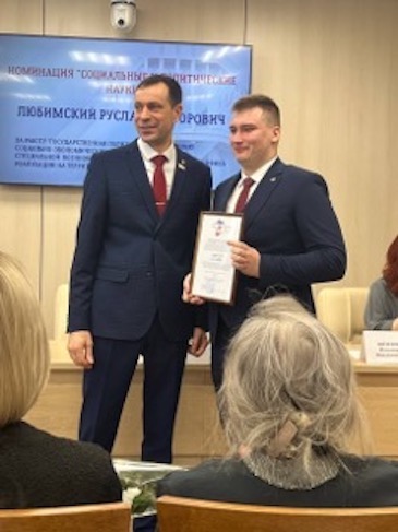 Премия Государственного Совета Республики Крым за научные достижения в сфере приоритетных направлений развития Республики Крым имени Н.Я. Данилевского в номинации «Социальные и политические науки» была присуждена студенту 4 курса Любимскому Руслану Викторовичу за исследование на тему «Государственная политика по обеспечению социально-экономических прав участников специальной военной операции: правовые основы и специфика реализации на территории Республики Крым», научным руководителем которого выступил заведующий кафедрой государственно-правовых дисциплин Института, доктор юридических наук, профессор, старший советник юстиции Басов Андрей Витальевич.