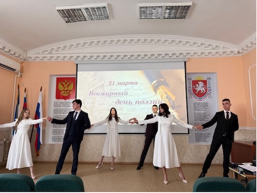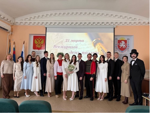В рамках мероприятия студенты представили насыщенную и оригинальную программу, в которой гармонично сочетались поэзия, музыка и театрализованная сценка. Особенно запомнилась постановка, в центре которой — современная девушка, романтичная натура, погружённая в книги. Её воображаемыми собеседниками поочерёдно становились поэты разных эпох: изысканный и галантный поэт-классик XVIII века в образе Пушкина, мечтательный и возвышенный поэт-романтик XIX века — Лермонтов, практичный и земной поэт-реалист XIX века — Гоголь, влюбчивый и немного стеснительный Есенин, эксцентричный и эпатажный модернист начала XX века — Маяковский, а также ироничный, но чуткий постмодернист современности — Булат Окуджава. Всё действие сопровождалось красивым вальсом и авторским видеорядом, который студенты сняли и смонтировали самостоятельно. Сочетание театра, поэзии, музыки и визуального искусства создало по-настоящему трогательную и незабываемую атмосферу вечера.
