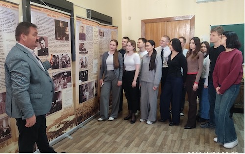 24 апреля 2026 года доцентом кафедры общегуманитарных и социально-экономических дисциплин Задерейчуком И.П. для студентов Института в помещении исторической памяти проведена экскурсия по выставке «Исторические судебные процессы Советского Союза над нацистами». Выставка посвящена Дню памяти жертв геноцида советского народа, совершенного нацистами и их пособниками в период Великой Отечественной войны 1941–1945 гг.